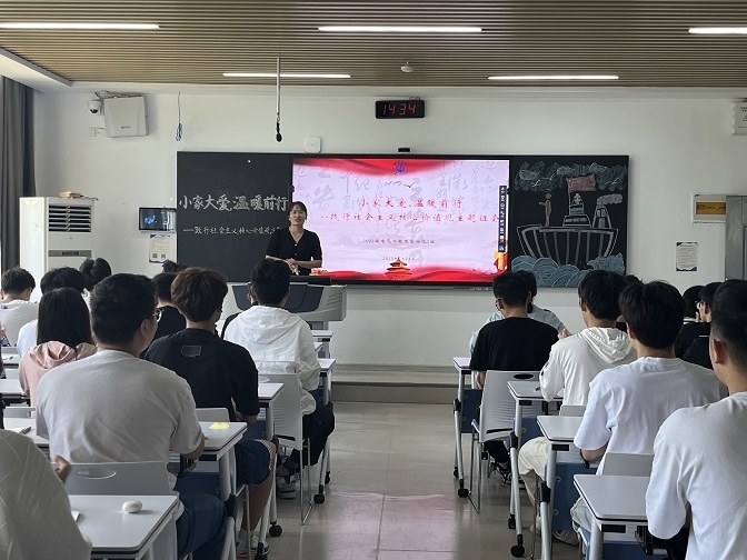 为更好地引导学生爱他人、爱宿舍、爱集体、爱国家,广泛践行社会主义核心价值观,用社会主义核心价值观铸魂育人,5月23日下午,电子与电气工程学院2022级电气工程及自动化2班在综合楼C101教室召开“小家大爱,温暖前行--践行社会主义核心价值观”主题观摩班会。学院党委副书记马程、专职辅导员、全院学生代表参会观摩,班会由辅导员李芹影主持。