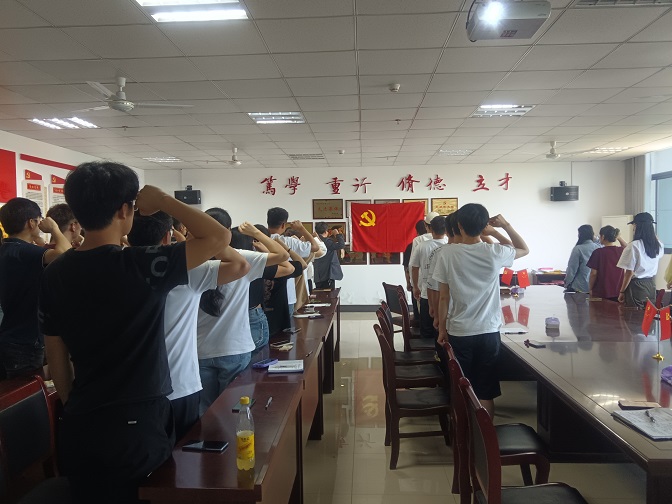 最后,全体毕业生党员在朱银邦的带领下,面对鲜红的党旗,右手握拳重温入党誓词,让毕业生党员铭记入党宣誓时的庄严承诺和坚定决心,在党旗下再次接受洗礼,今后要时刻提醒自己不忘初心、牢记使命,始终以党员的标准严格要求自己。