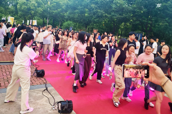 伴随着动感的音乐,457名毕业生踏上毕业红毯走进美术馆,接受来自现场师生的祝福,意气风发地告别满载青春回忆的校园,郑重地踏上走向未来的第一步。毕业生们在毕业仪式中收获满满惊喜与感动,也在留言簿上为母校留言:“心向阳光,行向远方”。爱乐协会的同学们也在红毯仪式上演唱了《送别》《等你下课》等充满离别情愫的歌曲,引得同学们驻足合唱。这一刻,青葱的记忆、离别的泪水弥漫在现场的每一个角落。