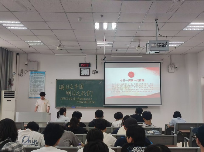 浇花浇根,育人育心。为正确引导青年大学生坚定理想信念、肩负时代使命,5月25日上午,电子与电气工程学院2021级电子信息工程2班在G104教室召开《明日之中国,明日之我们》理想信念教育主题观摩班会。学院全体专职辅导员及各班级学生代表参加此次观摩班会。