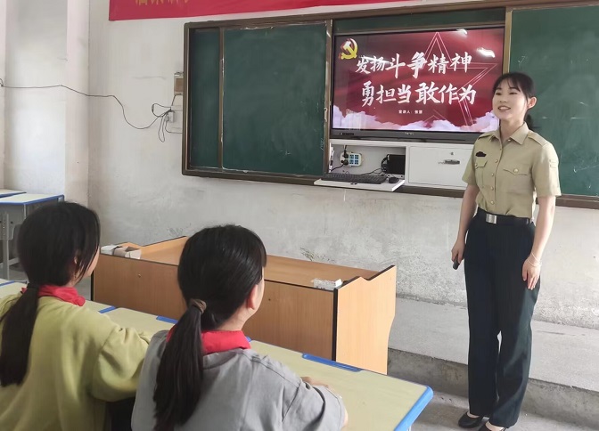 学生的宣讲在朱疃小学进行。把学习宣传阐释党的二十大精神与蚌埠红色文化传承创新相结合,展开红色主题宣讲。以情感人、以理服人、以史为鉴、史论结合,以蚌埠的红色故事为引,引导小学生了解党的光辉历史、感悟党的初心使命、领会党的创新理论、汲取党的精神力量、传承党的红色基因。宣讲活动结束后,大学生还与小学生们进行了互动交流,结合自身经历、专业特色等激励青少年紧跟时代步伐,鼓励同学们争做新时代的奋斗者、追梦人。