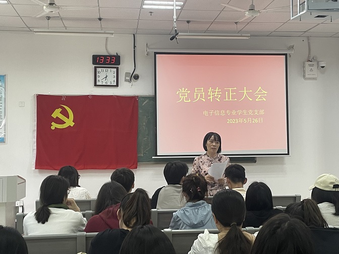 2023年5月26日,电子与电气工程学院电子信息工程专业学生党支部在G103教室召开接收中共预备党员暨预备党员转正大会。会议由党支部书记刘斯文主持,支部全体党员参加。