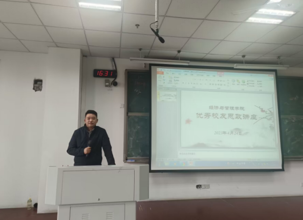 在经济与管理学院的校友企业家思政课上,2012届优秀校友张俊讲述了自己在校期间的创业探索经历以及目前为止的创业成就,并向在场的同学介绍了所创企业的主要业务、项目案例和企业技术实力,希望能与母校在毕业实习以及社会实践等方面保持密切合作,表示下一步希望与母校深化技术合作,在科技研发、人才培养等多方面共同发展。
