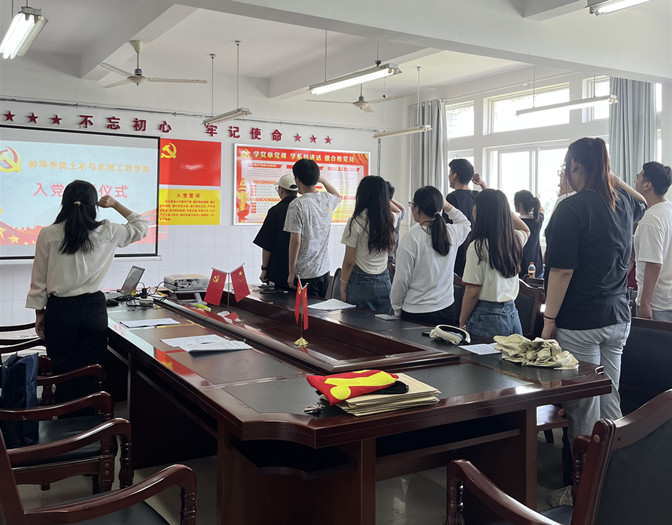 6月6日,土木与水利工程学院党委在学院党员活动室举行新党员入党宣誓仪式,学校党委副书记芦永萍、学生党支部书记、全体新发展党员和部分学生党员代表参加宣誓仪式。