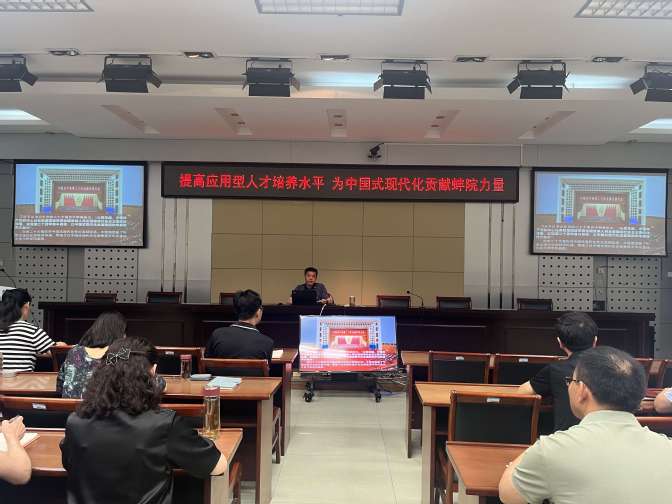 为进一步推进学习贯彻习近平新时代中国特色社会主义思想主题教育走深、走实,6月14日上午,蚌埠学院党委委员、副院长张尔桂以《提高应用型人才培养水平 为中国式现代化贡献蚌院力量》为主题,为分管部门和所联系二级学院的全体党员讲授专题党课。