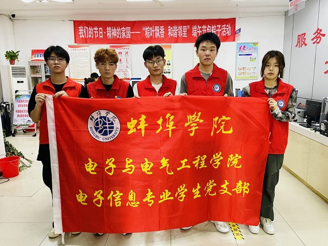 为弘扬中华民族节日文化和互帮、互助、互爱的传统美德,在端午节来临之际,电子与电气工程学院电子信息专业学生党支部党员代表及学生志愿者代表,于2023年6月15日上午,在金新社区联合社区工作人员进行送粽子传递爱心的活动。