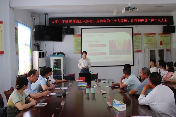 在与韩台村驻村工作队进行深入交流的基础上,蚌埠学院大学生宣讲团围绕党的二十大精神,向村民们宣传习近平新时代中国特色社会主义思想、宣讲党史以及蚌埠地区的红色文化,让党的理论“声”入人心。