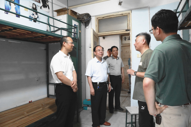 校领导重点走访了学生宿舍5、6、7、8号楼,仔细查看了学生生活设施情况,就学生宿舍水管老化等问题进行了全面细致的调研摸排。每到一处,均进行现场讨论并提出了具体改造意见。陈国龙表示,“要利用暑期改造的黄金时间,着力解决师生长期以来‘急难愁盼’问题,进一步改善学生的住宿条件,让学生切实感受到生活环境的变化。”“学生共同关注的问题就是学校要立行立改的问题,”孙艳辉表示,“后勤管理处与基建处要协同发力、加快推进,共同做好暑期学生宿舍项目整体维修升级改造工作,有效解决学生住宿的实际困难。”