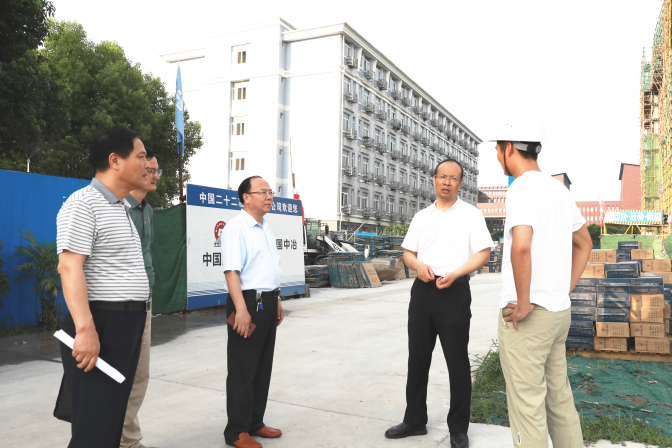 在学生宿舍13、14号楼项目施工现场,校领导听取了基建处和施工方有关负责同志关于工程进展情况的汇报。陈国龙强调,宿舍楼建设是一项良心工程,也是全校师生关心的大事,要做好施工项目监督管理工作,统筹协作全力以赴抢工期,确保高质量快速度推进项目建设。孙艳辉仔细询问了在建宿舍楼的项目建设情况,强调要及时协调解决施工过程中遇到的问题,严把质量关口,保证按期交付。