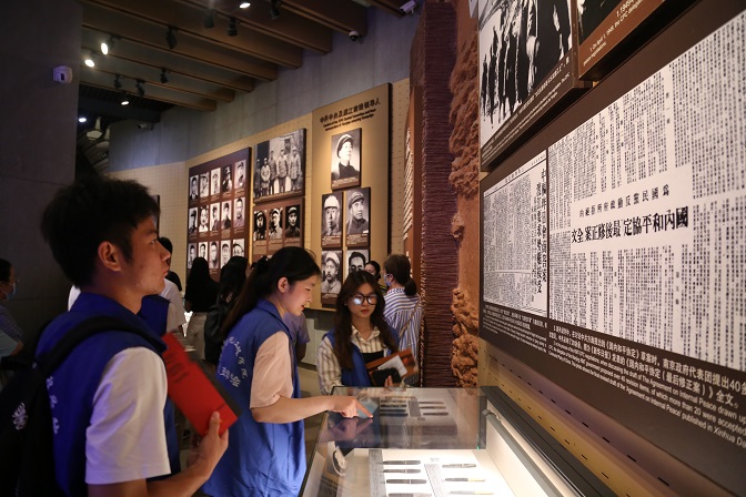 第二站志愿者们来到合肥渡江战役纪念馆。渡江战役纪念馆陈列的《百万雄师过大江》全面展示了闻名中外的渡江战役,跟随讲解员,志愿者们依次参观战前形势、战役准备、突破江防、战役胜利、人民支前、英烈业绩六个展厅,重温那段波澜壮阔的革命历史,感受百万雄师过大江的雄伟气魄,感悟红色经典的时代内涵。通过参观学习,志愿者们表示英雄与历史、流血与牺牲、艰苦与荣耀应当被每一代人纪念与传承。