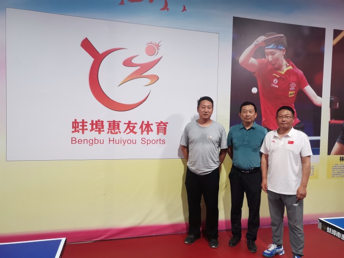 蚌埠市惠友乒乓球俱乐部是一家国家级示范性青少年体育俱乐部,实力雄厚,是蚌埠市唯一一家获得《社会组织承接政府转移职能和购买服务资质目录》的体育俱乐部,常年训练运动员有1000多名,多次荣获全国比赛和省级比赛的优良成绩,有6名运动员获得国家一级运动员称号,23名运动员获得国家二级运动员称号。每年都有运动员进入高水平大学深造,连续多年组织承办全国青少年邀请赛和蚌埠市“双拥杯”比赛,获得了良好的社会声誉。蚌埠惠友俱乐部董事长蒋继亮热情接待了王建一行,双方进行了坦诚的交流。蒋继亮介绍了俱乐部的概况及主要训练比赛情况。王建介绍了体育教学部的体育课程设置、师资队伍、教科研情况,以及体育设施设备情况。两位教授简要介绍了自己的研究方向和研究成果。经商谈,双方认为,在训练比赛合作、赛事组织、裁判员培养、社会服务等方面具有合作潜力,并初步达成合作意向。