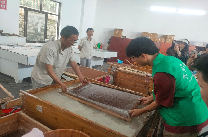 8月8日,实践团队走进中国宣纸文化园,感受中华传统文化的魅力和手工艺者精湛的技艺。