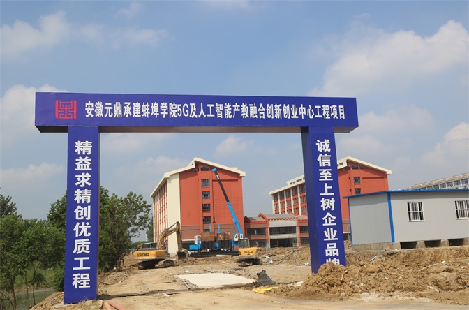 上午10点,日头正盛,蚌埠学院新建的13、14号楼宿舍东侧已经拓展出一大块平整的地面,这里就是蚌埠学院正在建设的5G及人工智能产教融合创新创业中心。炎热的施工现场,建筑工人们正埋头苦干。