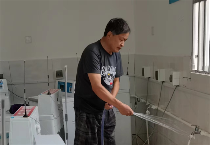 学生公寓管理科始终奋战在一线,炎炎夏日, 工作人员每日对宿舍进行检查维修,及时更换维修旧设备,维护新设备。对各公寓、楼层每台洗衣机进行拆卸清洗消毒,确保学生使用时干净、卫生、整洁。完成1--12号楼开水器滤芯更换,水箱水垢清理等消毒工作,确保师生安全用水。对毕业生房间全面清理打扫,不留卫生死角,并进行全面消毒,维护宿舍环境干净整洁,让返校学生安心入住。及时、用心的做好每一项水电日常维修、专项维修工作,全力守好学生公寓水电“生命线”。
