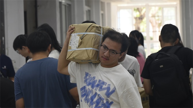 大二学生梁李琴刚收拾完行李,就带着妈妈起逛校园。这是她的妈妈第一次进入学校,看到了女儿学习和生活的地方,十分高兴,“假期就听女儿说学校对各项设施都进行了改造,现在看到校园这么好,她住在这咱们也是真的放心!好的环境里就更要好好学习,希望她今后能在学校里有多多的收获。”终于有机会带父母一起看看学校,和他们分享自己的校园生活,梁李琴也很快乐。