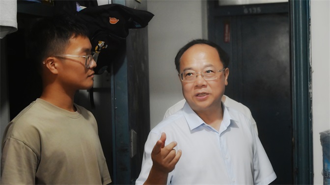在走访中,校领导分别走进食品与生物工程学院、机械与车辆工程学院、经济与管理学院、文学与教育学院的多间学生宿舍,仔细察看宿舍硬件设施和环境卫生状况,全面了解学生宿舍维修改造、安全管理、后勤服务保障等综合情况,询问他们的学习、生活以及未来规划。