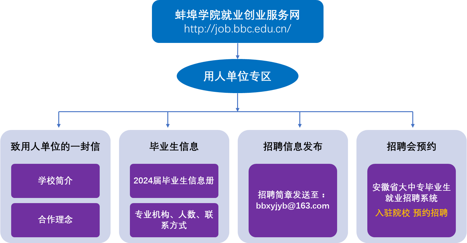 请用人单位及时关注“蚌埠学院就业创业服务网”,基本可解答您的疑问和需求。