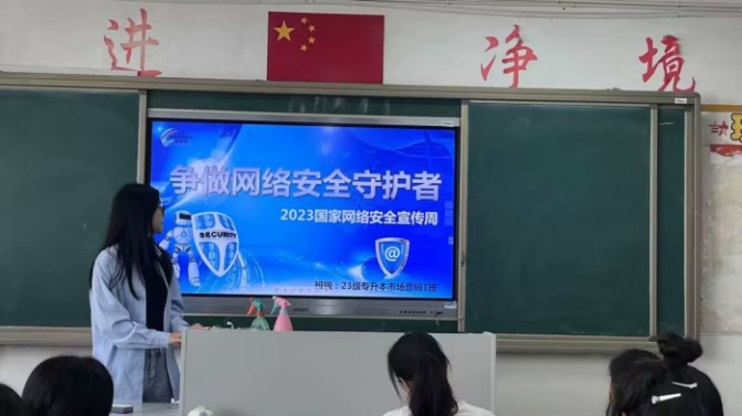安全有界,网络无边。青年是网民的重要组成部分,培养青年的网络安全意识是学校教育的一项重要内容。为学习宣传贯彻《习近平论述网络安全》,增强学生网络安全意识,提高对信息的甄别和对个人信息的保护能力,教育学生做到文明健康上网,2023年9月11日-13日,本科各班级在教学楼分批开展“争做网络安全守护者”主题班会。班会由各班级宣传委员主持,班级同学全部到场积极参与,班级同学们深切地感受到了网络安全宣传周带来的正能量。