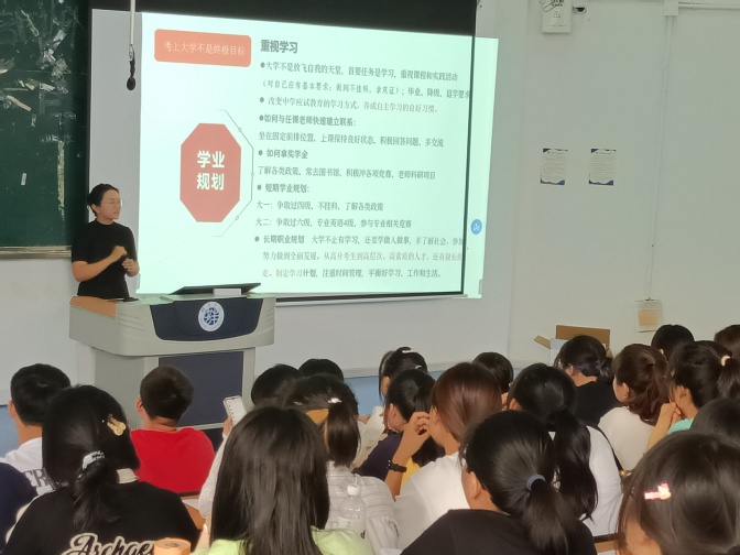 接着,外国语学院辅导员王娜娜从文明礼仪教育、安全教育和学业规划三个方面向新生们开展教育宣讲。