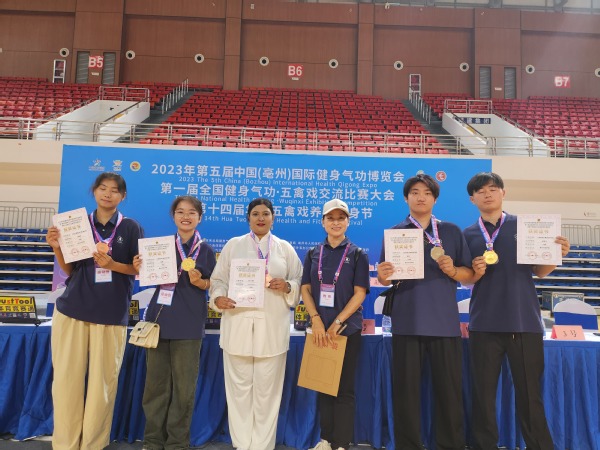 在刚刚结束的第五届中国国际健身气功博览会暨第一届全国健身气功五禽戏交流比赛大会上,蚌埠学院代表队斩获佳绩,获得学生团体比赛二等奖和多项个人奖。其中,赵国文获得乙组校园五禽戏个人比赛一等奖,夏超和陈慧荣获二等奖,闫晓雯荣获三等奖。我校南非籍教师Nereshia Reddy首次参赛,荣获丙组五禽戏个人比赛三等奖。
