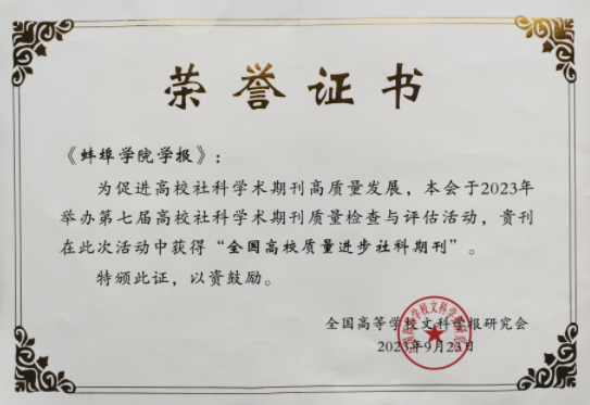 9月23日,全国高等学校文科学报研究会九届三次理事会会议在湖北宜昌举行,来自全国高校社科期刊的700余名代表参加了会议。会议公布了第七届高校社科学术期刊质量检查与评选结果,《蚌埠学院学报》获评“全国高校质量进步社科期刊”。