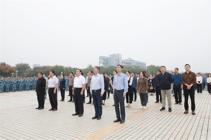 为庆祝中华人民共和国成立74周年,唱响礼赞新中国、奋斗新时代的激昂旋律,9月28日清晨,蚌埠学院隆重举行“同升国旗 同唱国歌”主题活动。校领导班子,职能部门主要负责人,二级学院党委书记、党委副书记、团总支负责人,2023级辅导员及2023级全体新生齐聚图书馆前广场,共同开启“唱响开学第一课”的新篇章。
