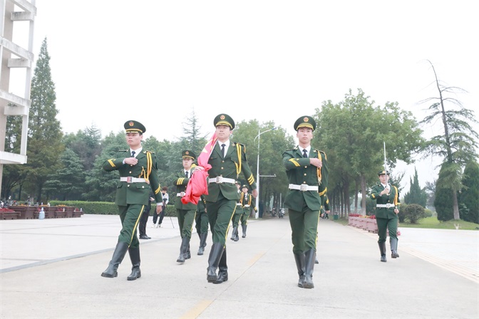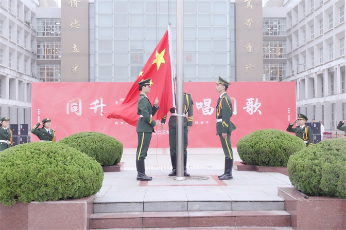 上午七点整,升旗仪式正式开始。国旗护卫队护送五星红旗迈着整齐划一的步伐,阔步昂扬地走向升旗杆。伴随着振奋人心的《义勇军进行曲》,在场新生集体高唱国歌,行注目礼,为伟大的祖国送上最诚挚的祝福。