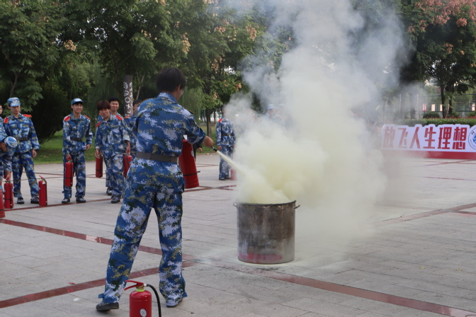 在图书馆前广场上,消防指战员按照《2023级新生消防、人防安全教育暨消防演练方案》,分组依次向同学们详细讲解各类消防救援装备的发展及使用方法,常用干粉灭火器的灭火原理、操作技巧及注意事项,消防水枪的使用及操作规范。通过现场亲身体验,同学们不仅实地学习了一系列消防知识和逃生知识,也掌握了部分消防器具正确使用方法,特别是灭火器的操作要领。