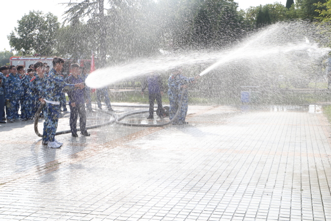 为了保证演练顺利进行,保卫处制定了《2023级新生消防、人防安全教育暨消防演练方案》,并进行了沙盘推演。消防演练内容分为消防安全教育培训、消防装备展示及讲解、灭火实操演练和消防水枪体验四个环节。