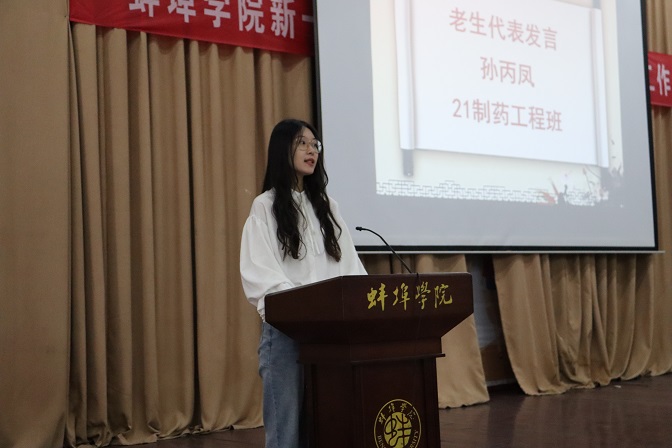 优秀高年级学生代表,2021级制药工程班孙丙凤结合自己的学习、生活、实践经历,希望2023级新生心存感恩,拒绝抱怨;保持热情,学会主动;合理规划,活在当下。