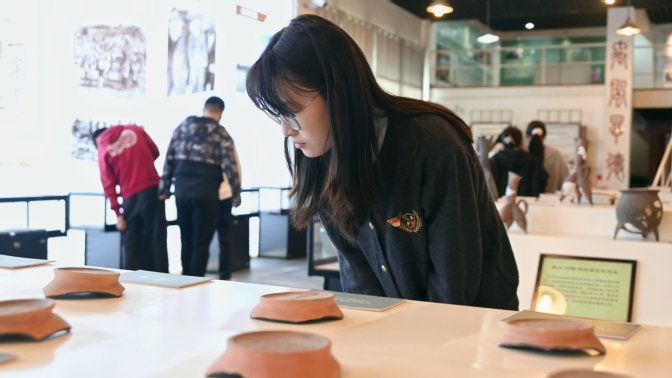 淮河文化研究中心通过精心制作的展板和淮河文化大学生讲解团的专业讲解向广大新生介绍了淮河历史文化、红色文化、生态文明等。同时,还精心准备了双墩遗址考古复原件、淮河流域出土文物复制件、花鼓灯演出实物、红色文化和地方文化原创作品等100余件展品配合展览,向广大新生展示了从“导淮”到“治淮”再到“靓淮”过程中淮河的变迁,使他们亲身感受淮河文化的魅力。