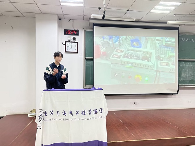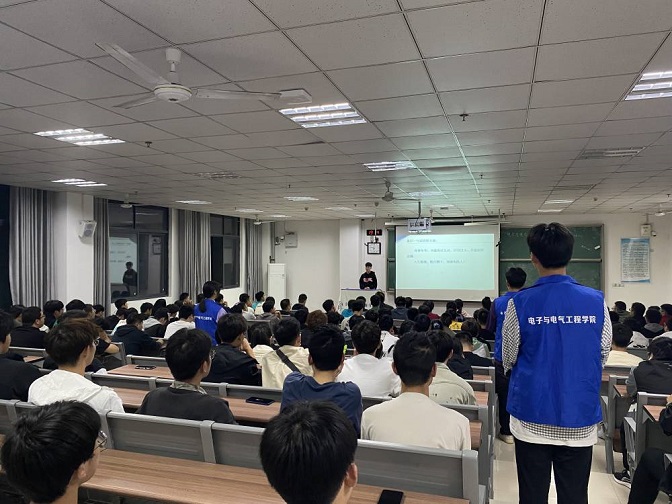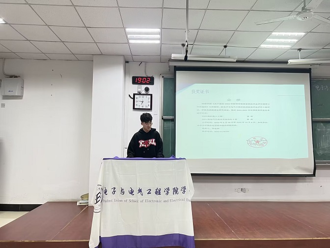 为积极宣扬榜样的力量,激励广大学子勤奋学习、增长才干、自立自强,营造良好的学习氛围,电子与电气工程学院于10月8日晚7点在教学楼G306教室举办第一期“TA是我的榜样”分享会。本次分享会由学院2022-2023学年度国家奖学金获得者薛想和孟秋进行宣讲,2023级新生代表参加分享会。