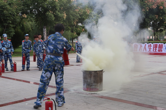 为做好学校消防安全工作,增强学生危机意识,普及火灾扑救和紧急情况处置能力,10月10日下午,学校举办2023级新生消防、人防安全教育暨消防演练。蚌埠市龙子湖区消防救援大队参谋席扬做消防、人防知识讲座,消防救援大队部分指战员现场做灭火器操作演示、高压水枪操作、重要消防器材展示及功能简介。