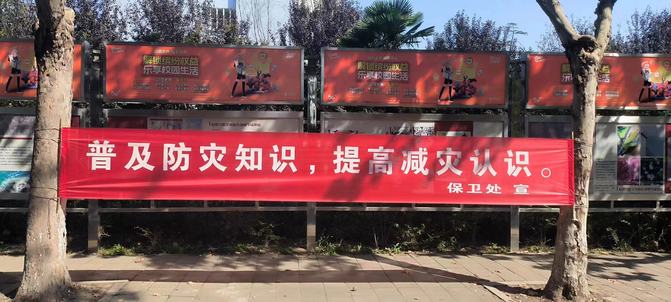 为了让广大师生更加清楚的了解“国际减灾日”的相关知识,学校在教学楼B楼大厅、宿舍区主干道等人员密集区域设立展板、悬挂标识标语,广泛宣传灾害自救互救常识,进一步提高师生的避灾自救能力。