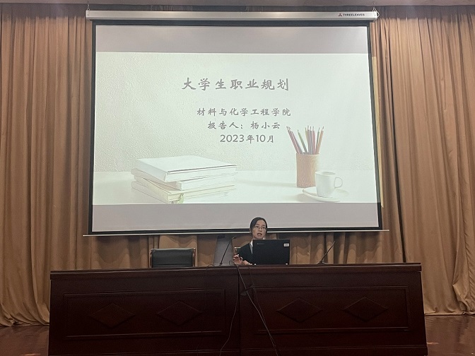 为更好地帮助新生树立职业生涯规划意识,明确未来奋斗目标。10月19日晚,材料与化学工程学院在图书馆学术报告厅举办了新生职业生涯规划专题讲座,本次讲座由“职点迷津,从心启航”材化学院辅导员工作室负责人杨小云主讲,学院党委副书记朱银邦主持,新生辅导员、全体2023级新生等聆听了此次讲座。