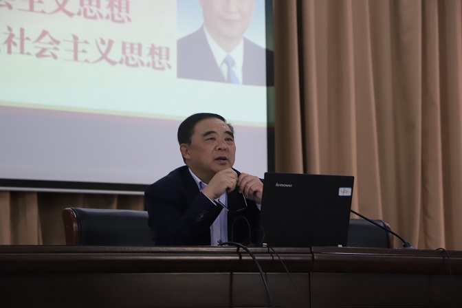 韦文联以“习近平新时代中国特色社会主义思想”为题,主要从“在内容上深化认识、在世界观方法论的高度深化认识、在“两个结合”中深化认识”等三个方面深入解读了习近平新时代中国特色社会主义思想的内容要点、科学内涵、精神实质和重要意义。韦文联强调学习领会习近平新时代中国特色社会主义思想的主要内容,必须把“十个明确”、“十四个坚持”、“十三个方面成就”联系起来学、贯通起来学,准确把握其基本观点、核心要义、科学体系、根本要求,深刻感悟党的创新理论的思想伟力和实践伟力,不断增强贯彻落实的自觉性和坚定性。习近平新时代中国特色社会主义思想是在实践中发展的,其世界观方法论也是发展的。“六个必须坚持”是其集中体现和精髓所在,只有准确把握包括“六个必须坚持”在内的习近平新时代中国特色社会主义思想的立场观点方法,才能更好领会习近平新时代中国特色社会主义思想的科学体系和精髓要。坚持“两个结合”,既是我们党立足一百多年奋斗实践的深刻总结,也是我们党在理论上与时俱进、守正创新的根本途径。