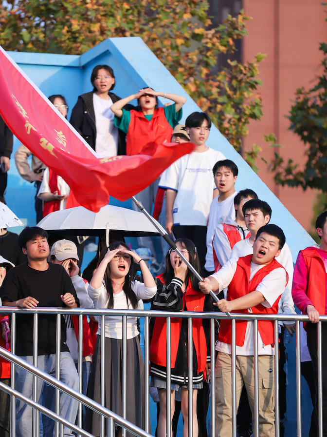 赛场外,观众们的默默关注、热情的加油助力更是为比赛增添了许多的激情。当女子四百米决赛打响炮声,王涵奋力冲刺。这时,她不是一个人在“战斗”,看台上的师生也一起为她摇旗呐喊:“加油!王涵!必胜!”“冲刺阶段体力不支,是老师和同学的声音给了我很大的力量。”赛后,王涵这样告诉记者。