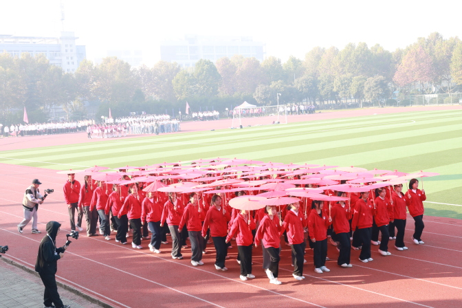 10月27日上午8时,伴随着激昂的旋律,方阵队依次亮相。外国语学院代表队身着红色队服,步伐坚定、气势如虹,展现出当代青年学子蓬勃朝气。他们手握嫣红的油纸伞,托举成五星红旗的形状,用自己的方式表达对国家的热爱,展现了蚌院学子浓厚的爱国主义情怀。在开幕式表演环节,外国语学院学子参与大型传统体育项目《五禽戏》,表演大气磅礴,将整个开幕式的气氛推向了高潮。