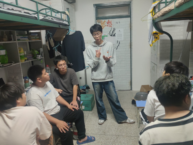 “让党员身份亮起来,让鲜红的党旗飘起来”,学生党员利用课余时间,佩戴党徽,亮明身份,来到自己联系的同专业新生宿舍,与学弟学妹进行面对面的交流沟通。他们认真倾听新生在思想、学习和生活中遇到的困惑,与他们分享自己的生活经验及大学学习方法,及时为答疑解惑,力所能及地帮助他们解决困难。同时还就入党流程、专业发展、学科竞赛、学生社团等各方面问题进行解答,鼓励新生养成良好的学习习惯,合理规划大学生活,积极向党组织靠拢。