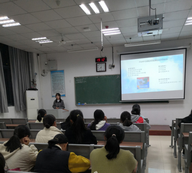 为强化学生的英语学习意识,掌握大学英语四六级、专四考试学习方法,提高复习效率,提升专业技能,11月6日晚七点,外国语学院在G104举办了四六级、专业四级备考经验分享会。20翻译张吕馨、21英语张涵两位同学做经验分享。