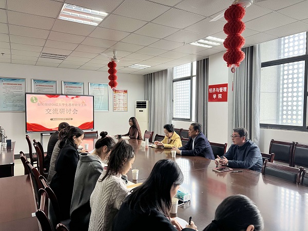 为深入学习贯彻习近平新时代中国特色社会主义思想和党的二十大精神,落实蚌埠学院新时代加强和改进思想政治工作会议精神,推进思想政治教育工作队伍内涵式建设和品牌化发展,11月10日上午,“苔米”思想政治教育工作室在综合楼F1315开展交流研讨会。校党委副书记韦文联,党委委员、党委宣传部部长史毓新,学生处处长赵思莉,经济与管理学院党委书记杨晓秋出席。会议由工作室负责人、经济与管理学院党委副书记夏晓燕主持,工作室全体成员参加。