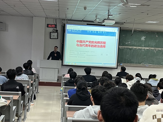 周毅以“中国共产党的光辉历程与当代青年的政治选择”为题进行宣讲,他从“历史为什么选择了中国共产党”“新生中国共产党如何迈出第一步”“中国的革命究竟应该走什么样的路”“中国共产党经历了怎样的苦难”“中国的革命事业为什么能转危为安”“中国共产党靠什么越挫越勇”等六个方面回顾了中国共产党从诞生、发展到不断壮大的历史过程,从一个个历史细节和历史人物中阐述了中国共产党人坚定不移的理想信念和坚贞不屈的革命意志。他表示,中国共产党正是从实事求是、坚守信仰、依靠人民中走出困境,从胜利走向胜利,广大青年要坚持不懈地用习近平新时代中国特色社会主义思想凝心铸魂,坚定理想信念,增强能力本领,在中国式现代化的伟大征程中奉献青春力量。