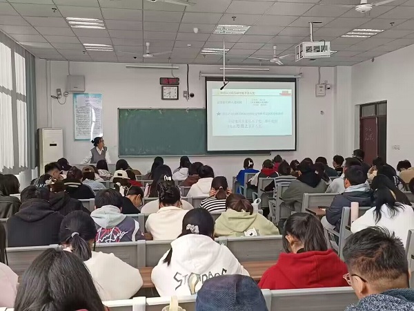 马克思主义学院门莹老师应邀为全体入党积极分子授课,他以“中国共产党党史”为主题,用一个个动人的历史事件和英雄人物告诉所有学生新时代新征程中国共产党的使命任务,作为大学生,要有为国为民的担当精神,不断坚定自己的信念和理想。