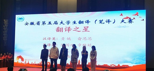 11月19日,安徽省第五届大学生翻译(笔译)大赛决赛在马鞍山举行。经大赛组委会评审专家评审,我校外国语学院翻译专业20级学生章雅婷同学荣获一等奖(指导教师:张万年),并荣获英译汉“翻译之星”称号。