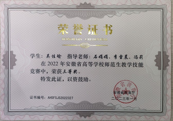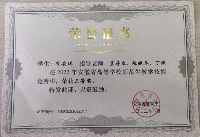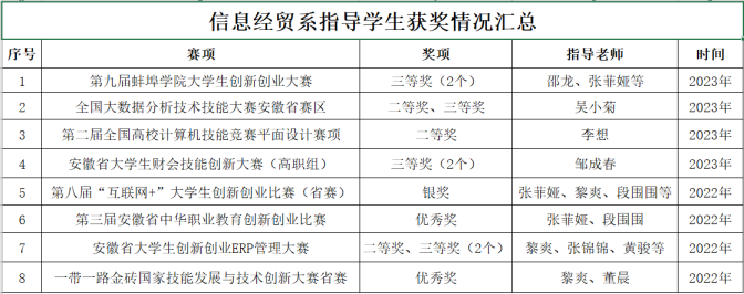 一年多以来,应用技术学院师生在各类大赛中共获得省市级以上奖项19项。在2022年安徽省高等学校师范生教学技能竞赛中,应用技术学院学子吴佳瑜、李安琪喜获三等奖。备赛过程中,指导教师对参赛选手从教学设计、板书设计、语言表达等方面进行全方位指导,参赛选手沉着应战,充分展现出扎实的专业知识、较强的教学技能和较高的综合素质,同时也彰显了应用技术学院学前教育专业取得良好的育人成效。不仅如此,信息经贸系和工业工程系更是在各类比赛中大放异彩,取得傲人成绩。