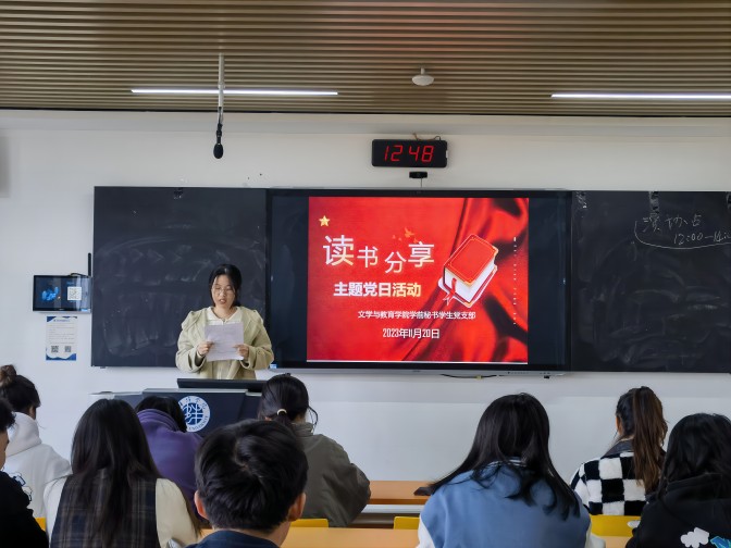 为进一步激发文学与教育学院党员读书热情,深化师生的思想教育,2023年11月20日-24日,文学与教育学院各党支部开展党员读书分享活动,学生党支部以支部为单位开展,教工党支部集体开展,所有党员全部参加。