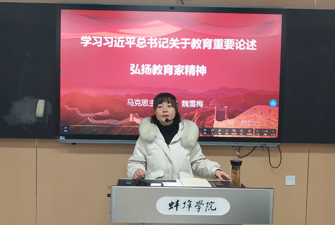 12月1日上午,为深入学习贯彻习近平总书记关于教育的重要论述,培养担当民族复兴大任的时代新人,由学校党委教师工作部负责组织,在教学楼B201教室举办新入职教师校本培训,专题学习习近平总书记关于教育的重要论述。本次讲座特邀马克思主义学院魏雪梅老师作专题报告,2023年新入职教师共计46人参加。