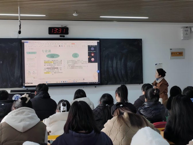李秋萍现为温州大学小学教育专业硕士研究生,她分别从考前准备、初始备考、复试备考三个方面进行了细致讲解,重点分享了笔试备考策略和面试技巧,还向大家推荐了有关考研的课程和up主。王一然现为江苏师范大学现代教育技术专业硕士研究生,她仔细介绍了不同阶段的学习内容以及学习方法。分享结束后,李秋萍和王一然与同学们进行了交流互动,鼓励大家不懈奋斗,踔厉奋发,向着自己的梦想不断努力。在场的同学们认真倾听分享,收获颇多。