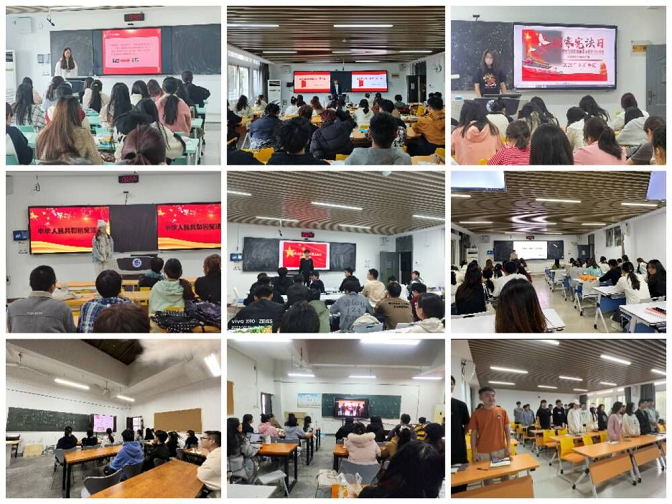 开展宪法宣讲,普及宪法知识。各学院以“大力弘扬宪法精神,建设社会主义法治文化”为主题,结合学院文化特色,深入开展宪法学习宣传教育及主题班会活动。面向全校学生,就习近平法治思想、党的二十大精神、中华人民共和国宪法、民法典等方面进行宣讲,进一步固牢同学们的崇宪尚法根基,增强法治观念。