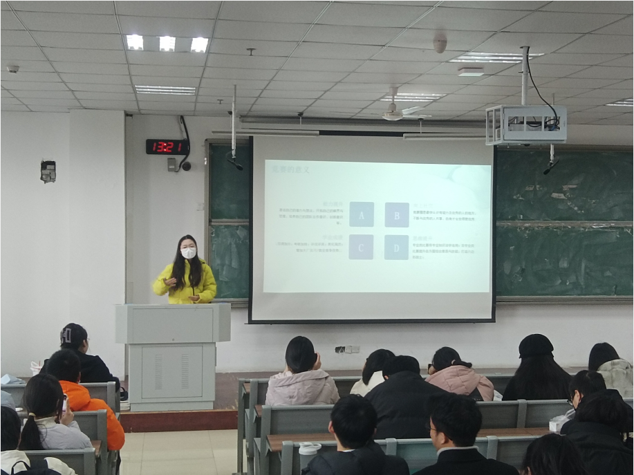同时,详细介绍了各类学科竞赛的特点,提醒同学们及时关注竞赛网站所发布的信息,了解比赛的要求,并着重分享了各类竞赛的大赛流程、自身备赛过程以及心得体会,号召同学们要勇敢大胆的参与,学会主动争取机会和制造机会,合理安排好备赛和课程学习时间,要有坚持到底的决心和吃苦耐劳的精神。
